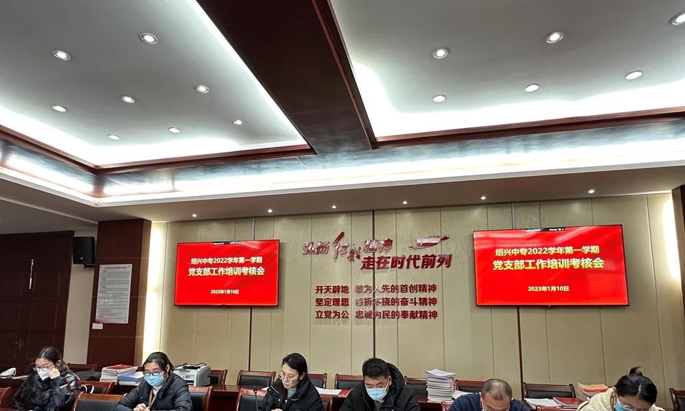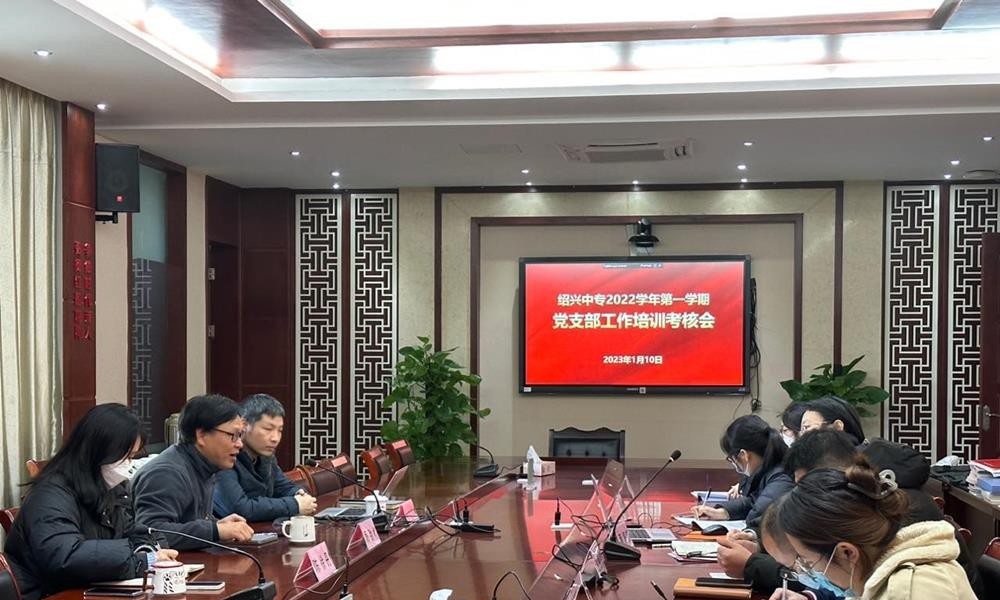 1月10日下午,绍兴中专2022学年学期党支部工作培训考核会在崇德楼301召开,市教育局政治处徐立平同志来我校对党务干部进行党务培训。会议由绍兴中专党委副书记、副校长周劲松主持。绍兴中专党委委员、副校长陈徐丹,党政办副主任章舒腾,各系党支部书记参加会议。