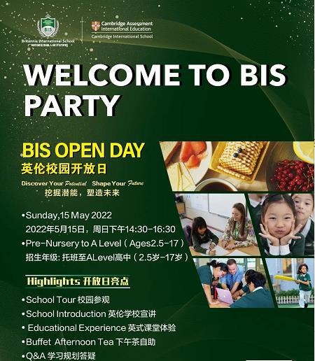 所有来宾可以参观我们的校园、体验英伦外教课堂,并且享受我们精心准备的英伦美食。期待您的到来!