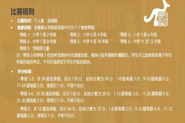 「袋鼠数学竞赛」总共有6个等级可选,覆盖1年级到12年级,人人都可参与。