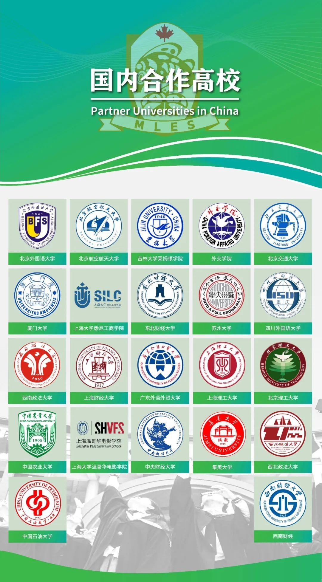 07.国内大学中外合作项目在全球疫情尚未解除、国际关系依然复杂的形势下,为了给枫叶毕业生提供更广泛的升学选择和出口,集团与国内多所著名高校合作并签署了项目合作协议。目前,合作高校已有22家,合作名单还在持续更新中。