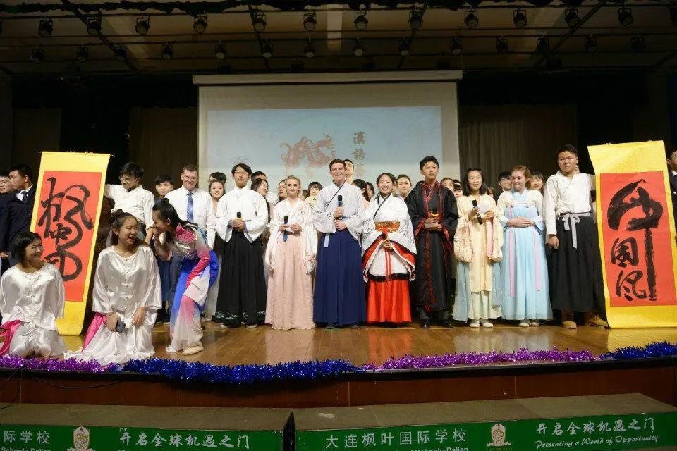 一年一度的汉语艺术节,是枫叶的年度盛事。全体师生佩戴中国风服饰,盛装参与各展所长,书法、绘画、诗词、戏曲、话剧、快板、相声、武术、歌舞表演、汉服表演……令人赞叹枫叶卧虎藏龙。校园里,参差挂着师生们手工制作的灯笼,学生穿行其中,解答各种刁钻古怪的诗谜。一幕幕场景,营造出深厚的中华文化氛围,让学生不知不觉中受到熏陶并吸收内化。