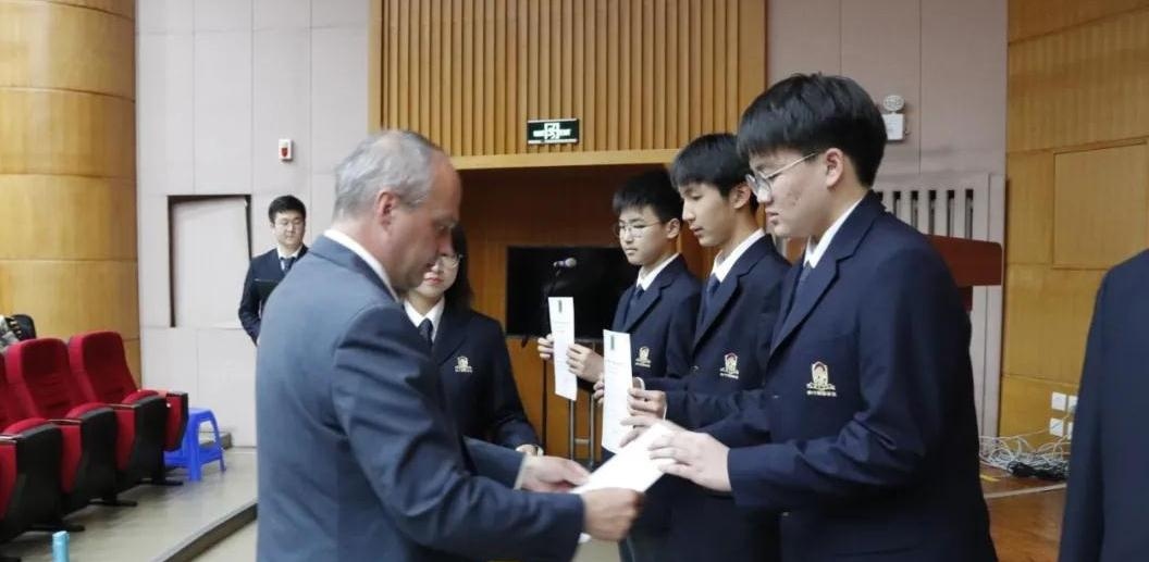 首先,高中校区中方课程校长解亚美女士对周恩来预备班的选拔过程做了总结,她阐述了设立周恩来预备班的原因:旨在引领我校学风和校风建设,发挥正面示范作用,也为初三品学兼优的学生提供一个考核自我,提升自己的平台。选拔的过程有严格的流程和标准,申请的学生需要经过笔试,面试,体能测试以及背景调查、名单公示等层层考验,选拔流程客观、公正,每一名学生都展现出了的自己。