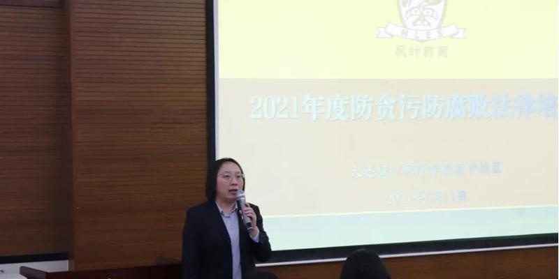首先,本次会议教科研中心主任杨梅女士进行上市公司防贪污防腐败法律知识解读的专项培训。2019年12月,港交所对《环境、社会及管治报告指引》及相关《上市规则》进行了部分修订,对上市公司提出了更高的要求及挑战,要求上市公司打造健康的企业文化。杨主任从环境、社会责任、公司管治角度,强调企业员工要充分共法律角度理解什么是贪污行为,从而杜绝此类现象的发生;企业也要定期检查,更新相关知识,提升整体反贪污意识;通过培训持续完善反贪污体系建设,最终转外部环境要求为自律,打造健康的企业文化。随后,杨主任总结了校园中可能出现的不廉洁行为,并为全员普及我国相关反贪污、受贿法律知识,以实际案例分析,警钟长鸣。最后,杨主任介绍到,集团在新版《员工手册》中增加了专门版块的“廉洁自律制度”,并设立监察委员会,明确实名举报途径,希望各位枫叶同仁都能严以律己,实现企业的良性循环,实现社会价值,从而做到可持续发展。