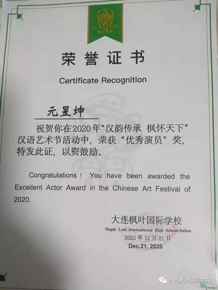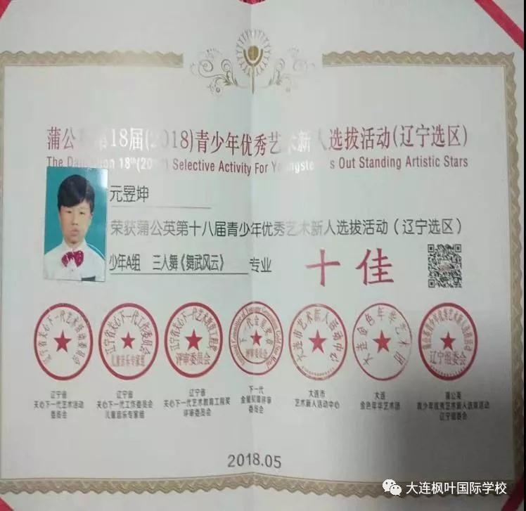 就这样,我在枫叶,上课安心听讲,课余时间参加活动,发展自己的兴趣专业爱好,在校内外有活动比赛的时候争着去做志愿者……我的初中生活,没有十分激昂,更多的是点滴积累。初二的时候我凭借较好的成绩与兴趣特长顺利进入了自律班而后又通过竞选成为了“邓颖超班”的一员。从那时起,我就知道自己代表的不仅仅是个人,而是一个集体;而同时我也代表着枫叶学子,知道身上肩负的责任。从那时起,我更加积极进取,与同学们一起团队协作,奋发图强,参与并且策划了很多次学校校内活动,如汉语英语艺术节,元旦晚会等等,还发挥了我的创新能力将中华传统武术与街舞文化结合,编排了真正中西文化交融的舞蹈,也成功凭借此次节目为枫叶学校赢取了大连市蒲公英杯舞蹈一等奖和合唱声乐一等奖的好成绩。