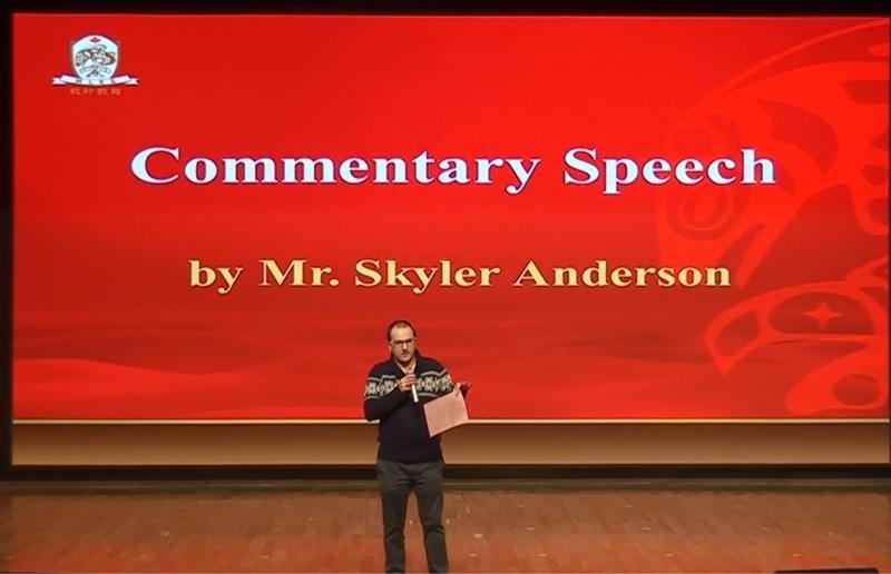 人间四月,枫华正茂,4月8日下午,第24届“枫叶杯”英语演讲比赛校园决赛在高中礼堂圆满落下帷幕。高中校区外方校长Ryan Waurynchuk,副校长Sheryl Appleby等领导出席了本次比赛。来自各个年级的8位外方教师担任了此次赛事的评委。